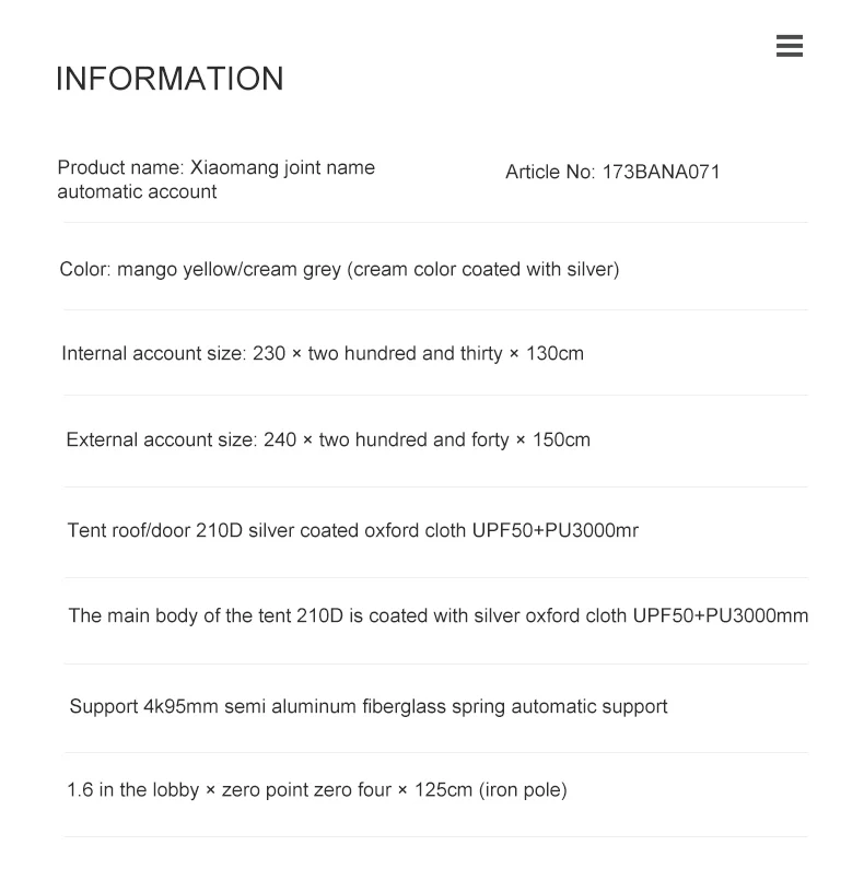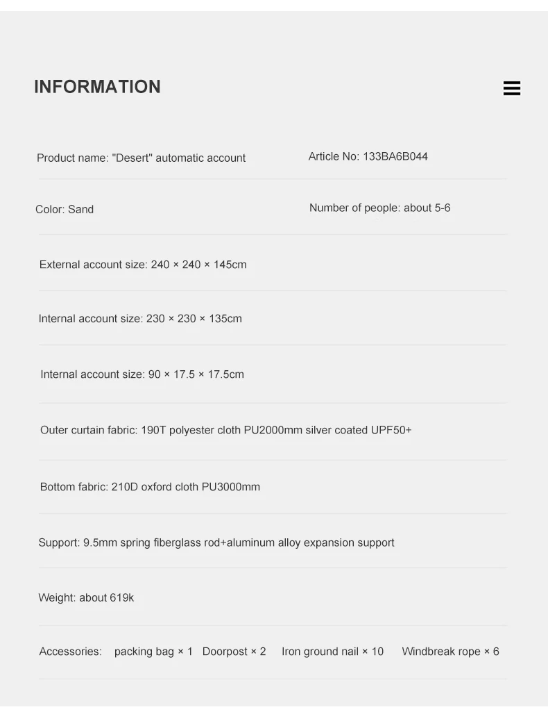 - خيمة خارجية مع مؤشر مقاومة المياه