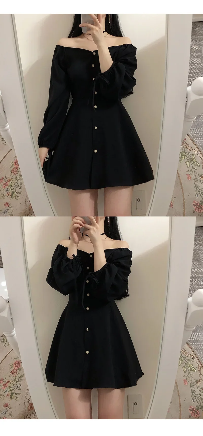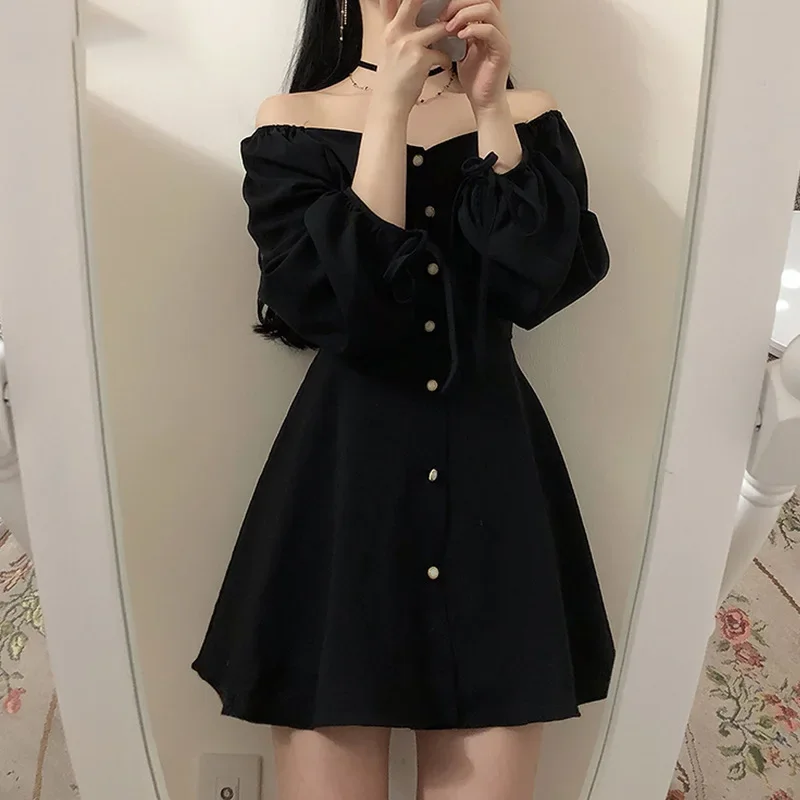 فستان نسائي أسود ضيق بطية صدر واحدة مناسب للخصر مقاس كبير جديد للربيع والخريف